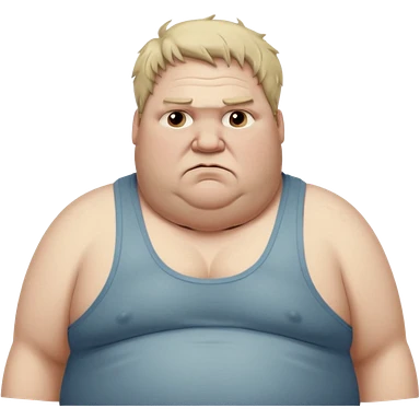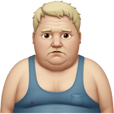 extremely morbidly obese middle aged white man in wifebeater with dirty appearance. His hair is very greasy and he looks lazy and uncaring emoji