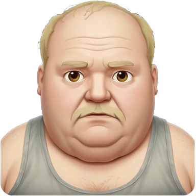 obese middle aged white man in wifebeater with dirty appearance. His hair is very greasy and balding emoji | AI Emoji Generator