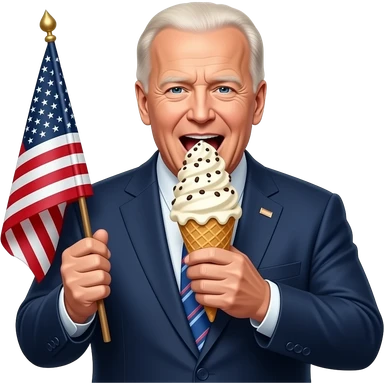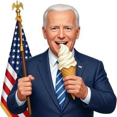 obese joe biden holds the flag of the thirteen colonies as he eats a 38 pound ice cream cone emoji