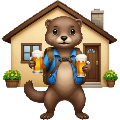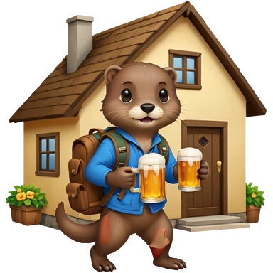 otter with a backpack holding a beer entering a house emoji