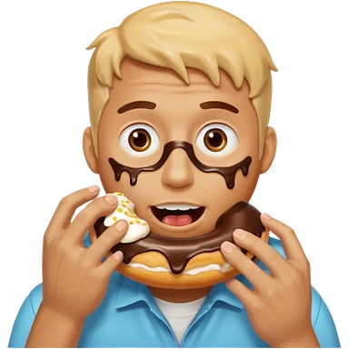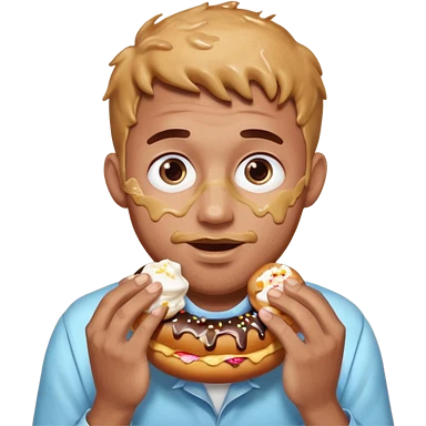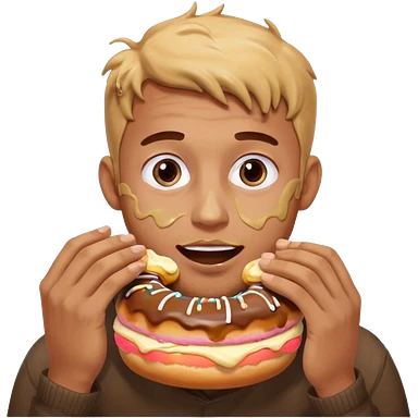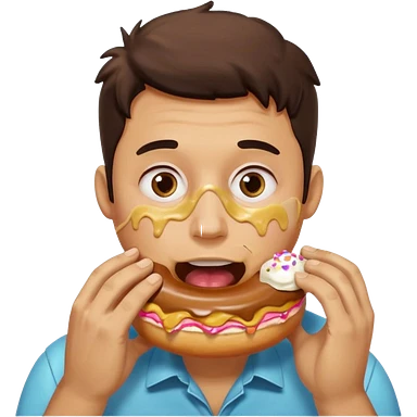 A man messily eating a filled donut, the donut is filled with Boston cream and it’s making a mess everywhere emoji