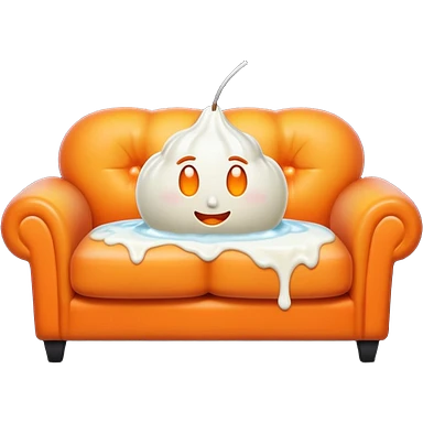 White cream drenched on a peach on a black couch emoji