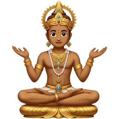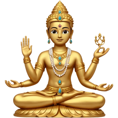 a golden statue of a Hindu deity seated in a yogic posture with one hand in a blessing gesture, adorned with ornate jewelry�. The figure sits on a decorated pedestal, radiating a sacred and traditional aura�. emoji