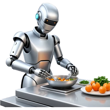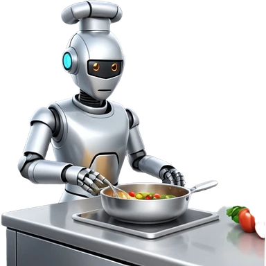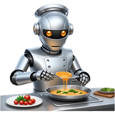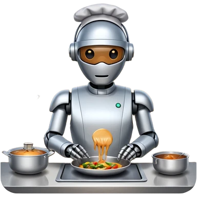obot chef preparing a gourmet meal in a futuristic kitchen emoji