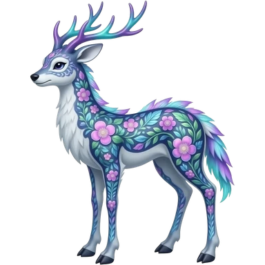 Auroral fuzzy Slim thin gradient-colored sparkly tattooed floral lanky scrawny tall elegant oriental feral painted Asian Absol-Glaceon-Sylveon-fusion-hybrid-creature emoji
