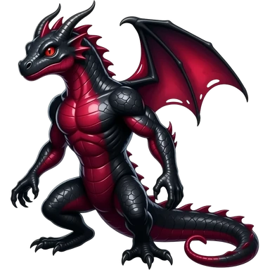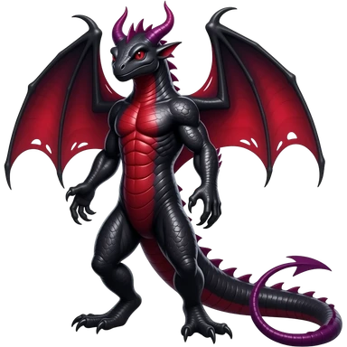 Shiny legendary epic cool anthropomorphic Obsidian-black and Ruby-red And Violet-purple lanky elegant evil badass handsome slick oily lizard-Salandit-demonic-newt-reptilian-Draco emoji
