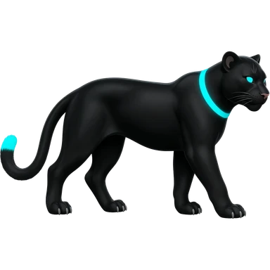 Obsidian-black fur body with bioluminescent neon glowing blue ring-markings Grem2-Gremz-Cheetah-Sergal-fusion, full body emoji | AI Emoji Generator