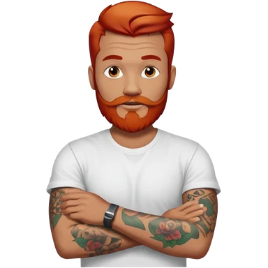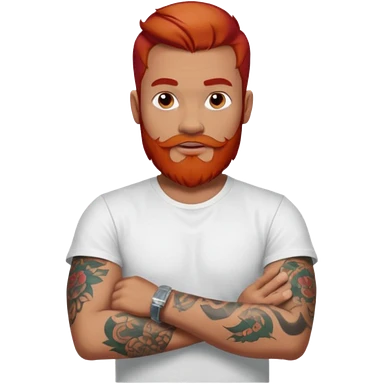 a guy with red beard red hair slick back white tshirt and tattoos oldschool on his arms emoji