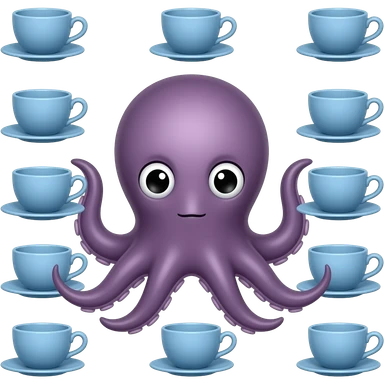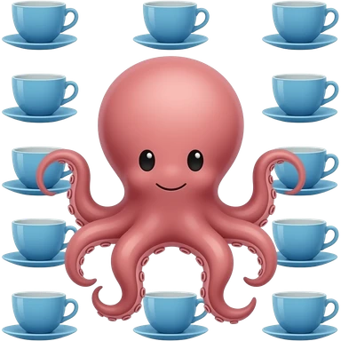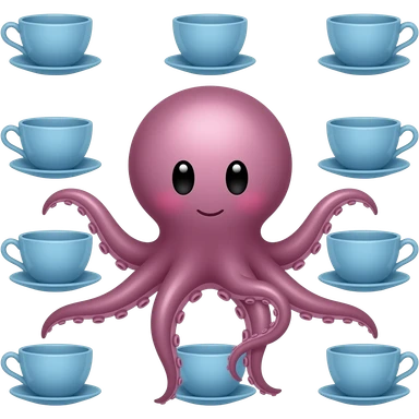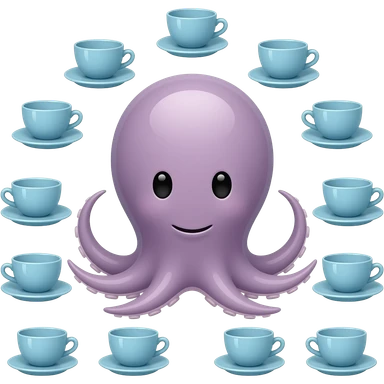 octopus with blue teacup set with identical arrangement, calm expression, rounded silhouette. emoji