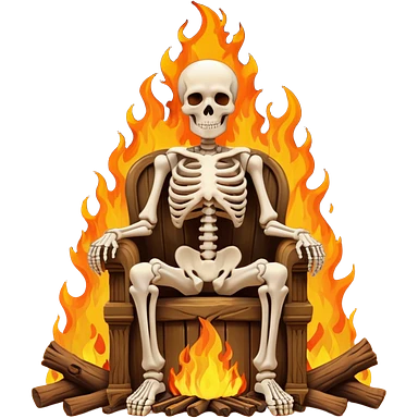 A skeleton sitting on a throne. Throne on fire around him emoji