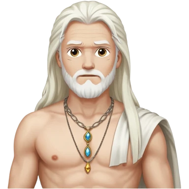 Odin with long white hair, long white silk loincloth, shirtless with necklace emoji