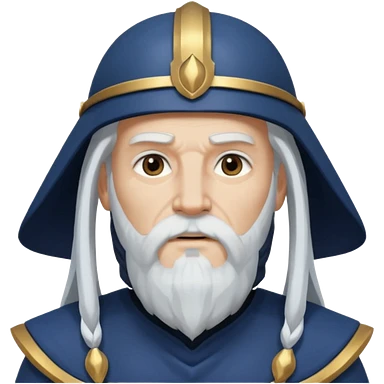 Odin, God of Wisdom from Gods and Goddesses with long white hair and beard, dark blue outfit emoji