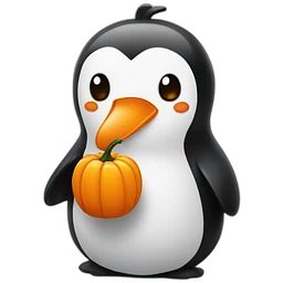 Un pingouin avec une citrouille accompagnée d'un œuf emoji