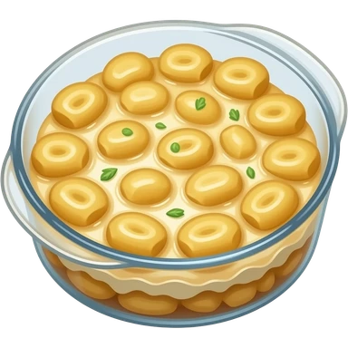 smiling face casserole - with eyes containing yellow sauce- smiling face on the bowl, not inside of it emoji