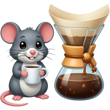 Gray Mice drinks coffee next to a v60 brewing emoji