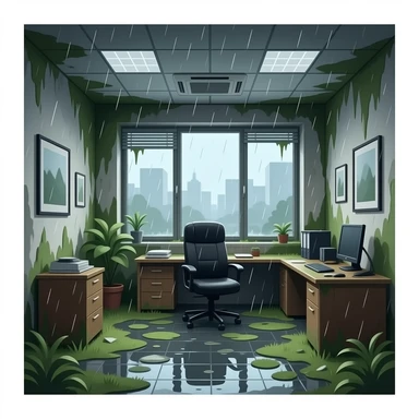 office desk, grays, and at 45 degree overhead angle with office chair emoji