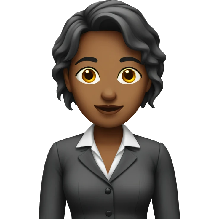 more realistic girl office, wavy lack hair, big eyes, big lips emoji