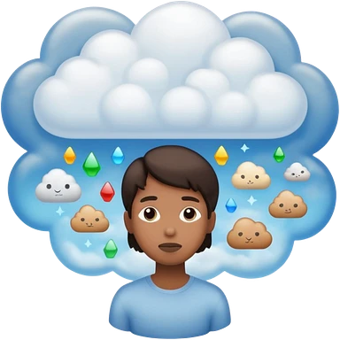 the items in the clound dont u underst<nd so it looks like hes thinking about that emoji