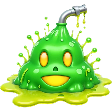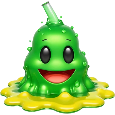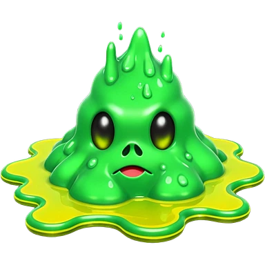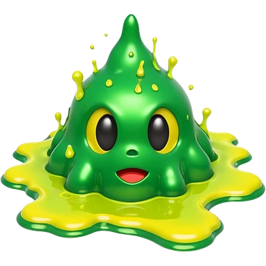 3D render of Green Ooze Puddle, toxic waste aesthetic, neon green bubbling liquid, caution yellow metal, industrial warning texture, Apple emoji style, isolated on white background --v 6.0 emoji