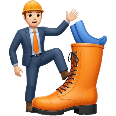 Giant orange boot stepping on an office worker emoji