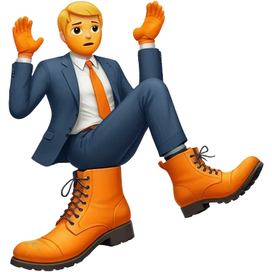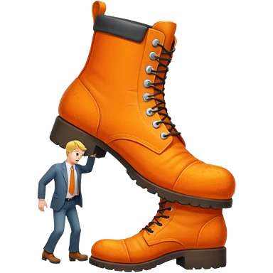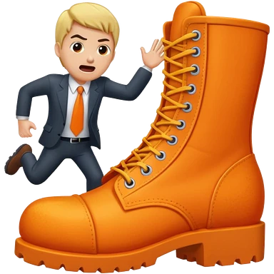 Giant orange boot stepping on a office man emoji