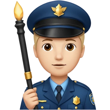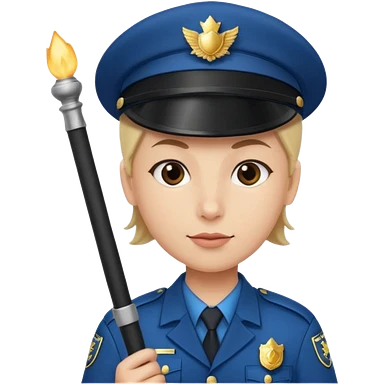 Russian traffic police officer in blue uniform with striped baton and peaked cap, holding traffic baton emoji