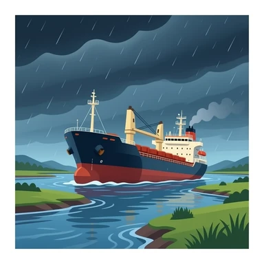 oil tanker ship running aground in a river estuary emoji