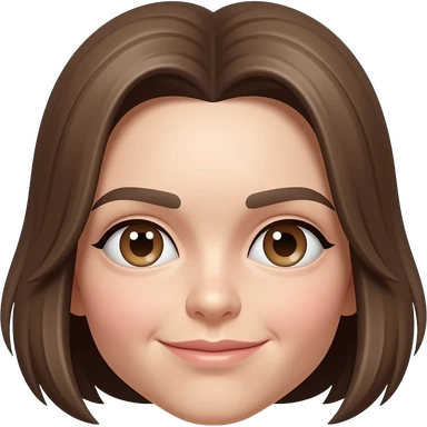 Ojos café claro, piel clara, cabello largo rizado color castaño sosteniendo un labial rojo emoji