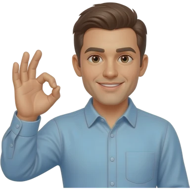 un señor calvo y sonriente haciendo la señal de ok, y con un letrero que diga "buen día" emoji