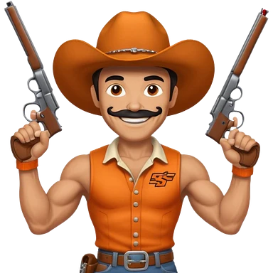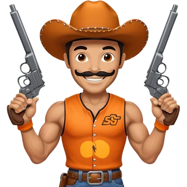 Oklahoma state university pistol Pete with a pistol in each hand emoji