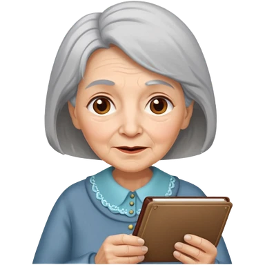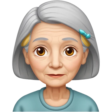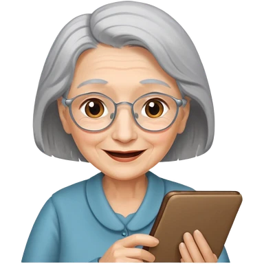 Older woman of color with gray shoulder length hair and glasses and smiling emoji