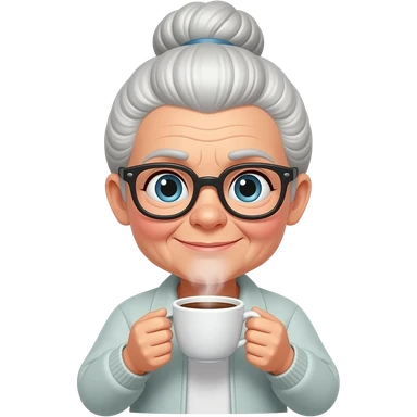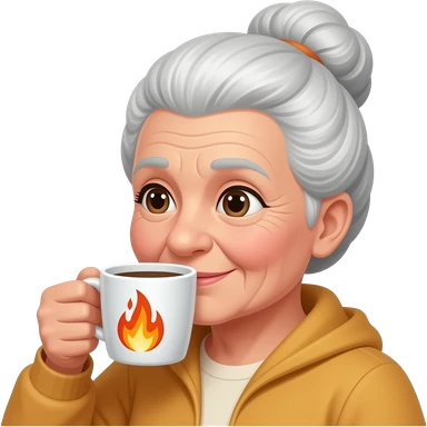 old women with bun and drink coffee with flame emoji