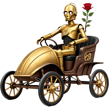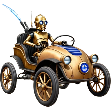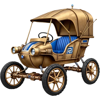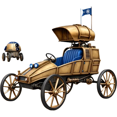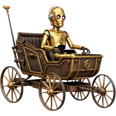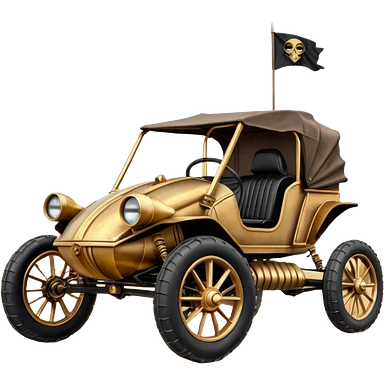 Old American West tarnished underglow C-3PO bounty hunter 1854 delicately ornate rosegold accents painted dune buggy buckboard wagon powered by electric motors and batteries with safety and belts flying rapidly roughening terrain stable on strong agile advanced cantilever suspension and steeringemoji