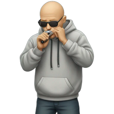 cool 50 year old bald guy in a hoodie playing harmonica emoji