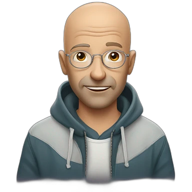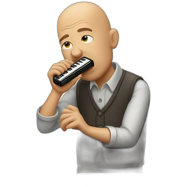 50 year old friendly bald guy in a hoodie playing harmonica emoji