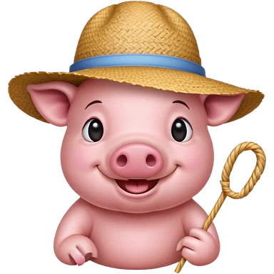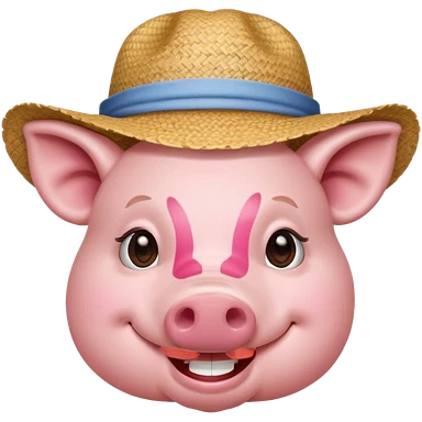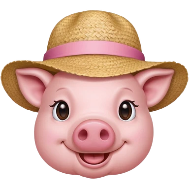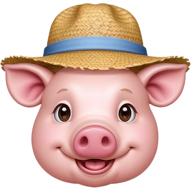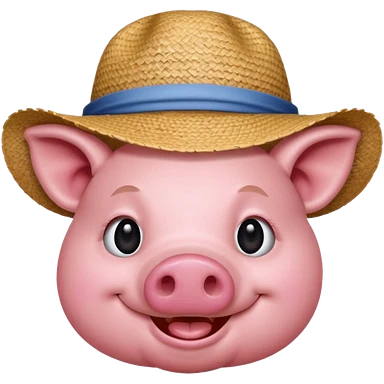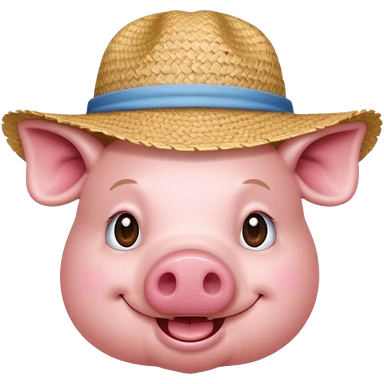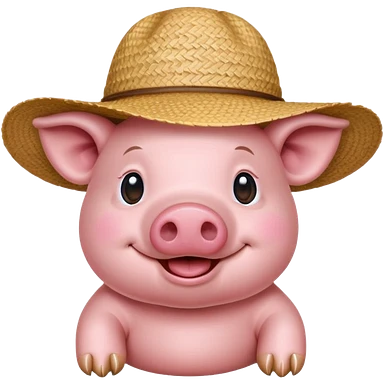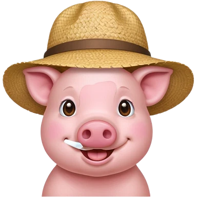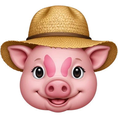 Farmer Pig – pink pig wearing straw hat and smiling emoji