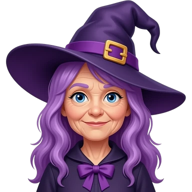 old woman witch in purple hair and purple hat emoji
