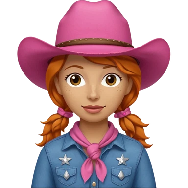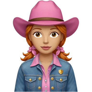 Ginger cowgirl with two braids and soft pink hat and jacket emoji