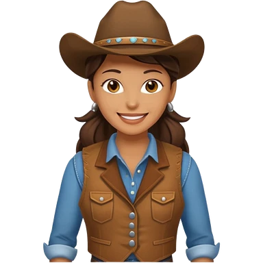 A cuddly cowgirl plush toy with denim vest, cowboy boots and a lasso emoji