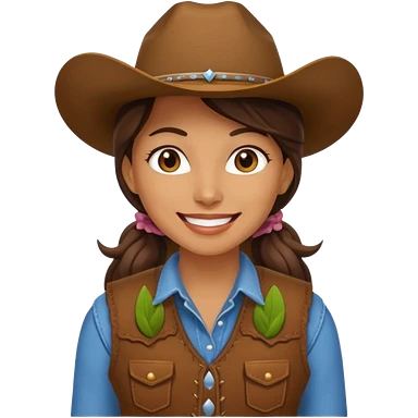 Ginger cowgirl with braids and soft green hat and jacket emoji
