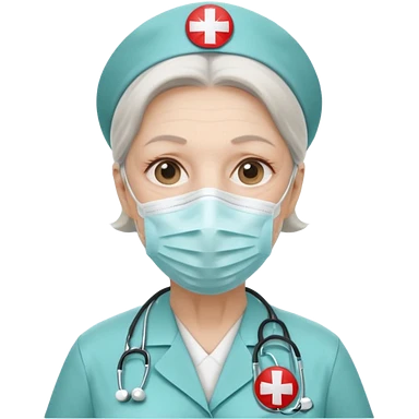 Old, female, wearing mask, solemn, nurse uniform emoji | AI Emoji Generator
