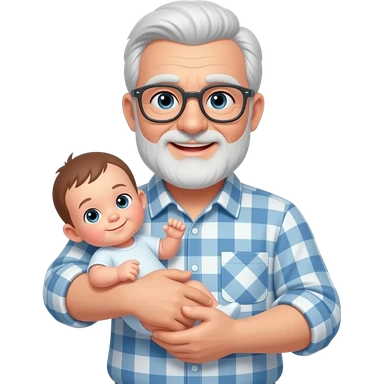 80-year-old grandfather with white skin color, blue eyes and glasses to see, wearing a white and blue checkered shirt. With white hair on the sides of his head. No hair in the middle of the head. emoji