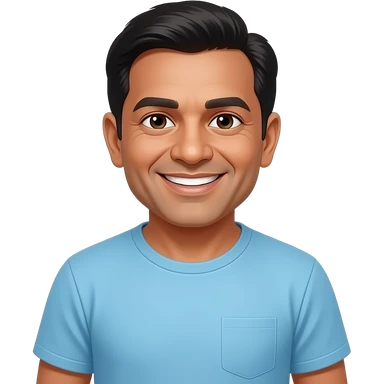 old half bald indian male smile in t-shirt emoji | AI Emoji Generator