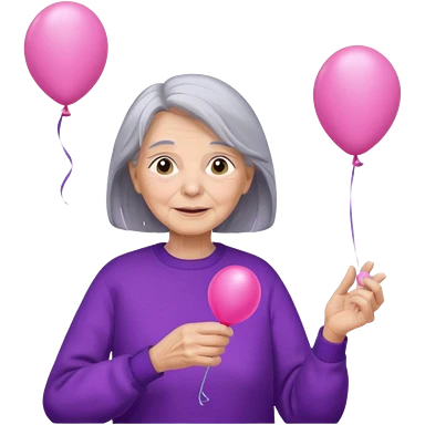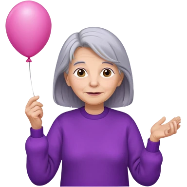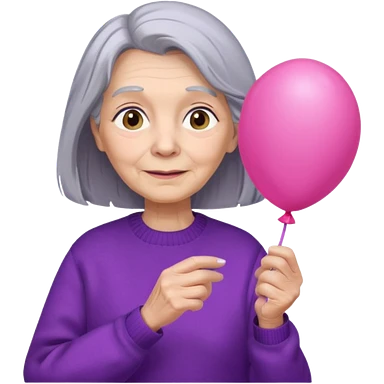 old lady, long grey hair, purple sweater, hold pink balloon emoji | AI Emoji Generator