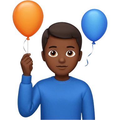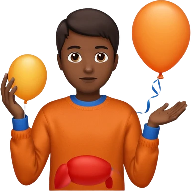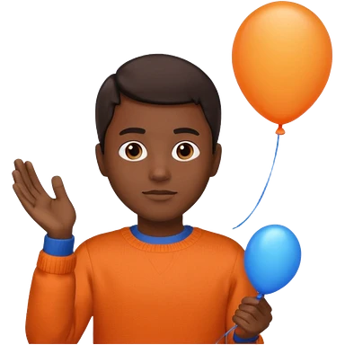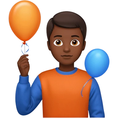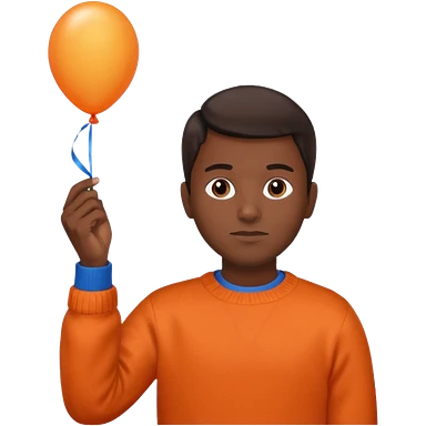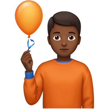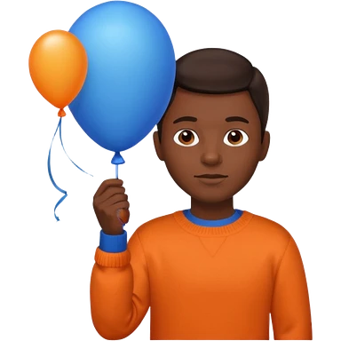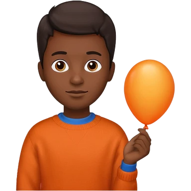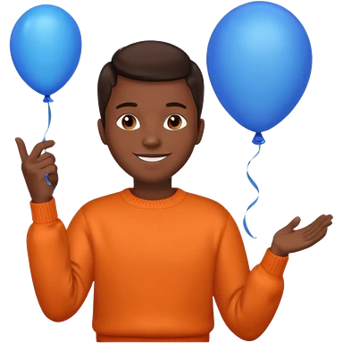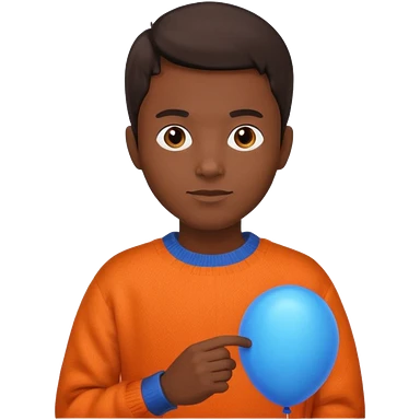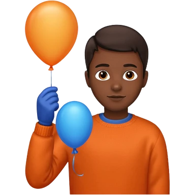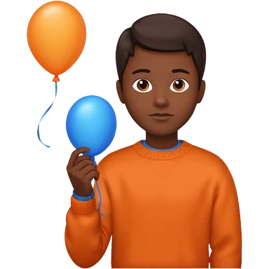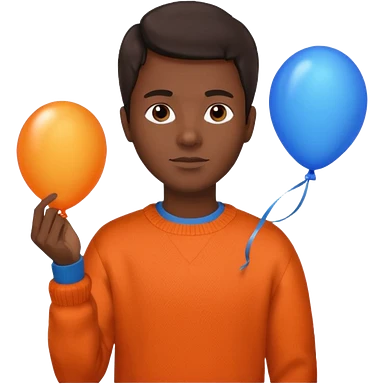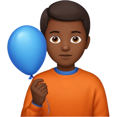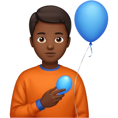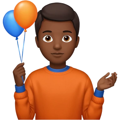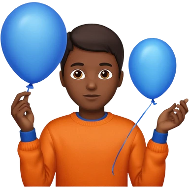 dark brown skin, orange sweater, hold blue balloon emoji