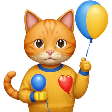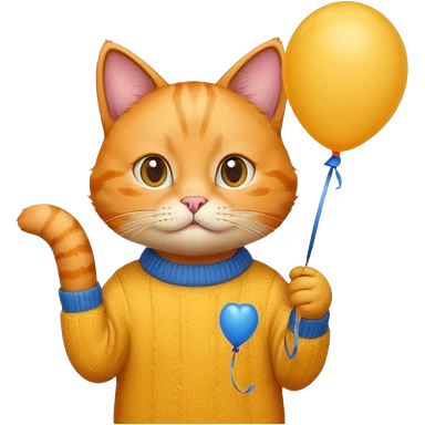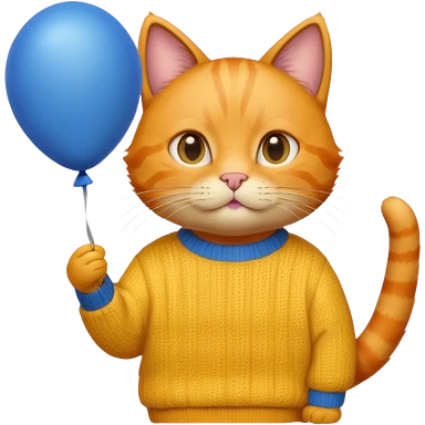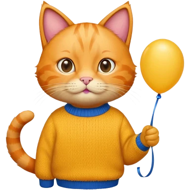 orange Cat hold blue balloon, yellow sweater emoji