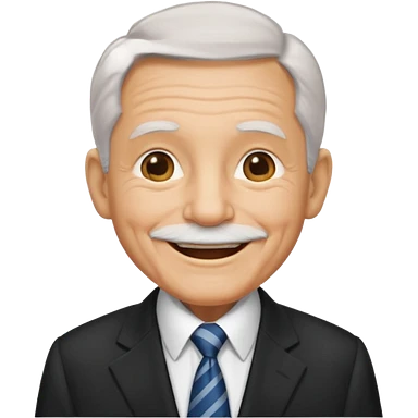 old man with long white hair and no moustache wearing a white shirt and a crown emoji
