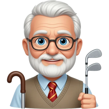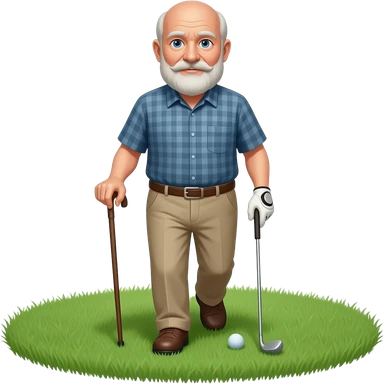 old man with no hair, a beard walking the golf course with a cane and golf club emoji