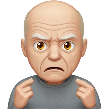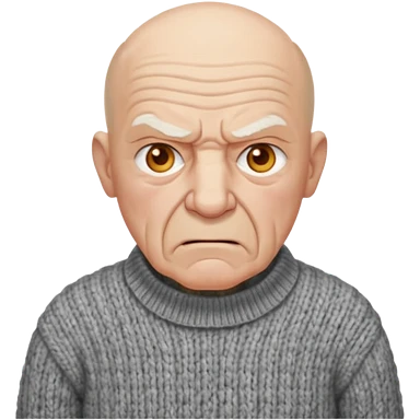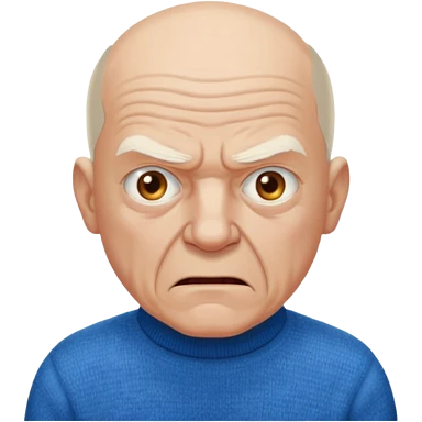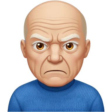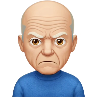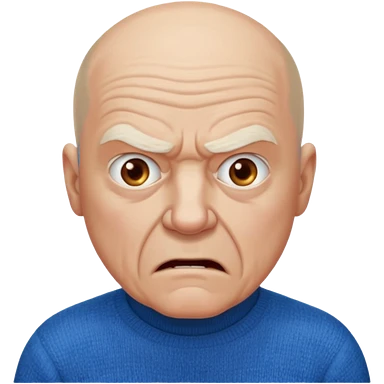 Old man, angry, blue sweater, bald emoji | AI Emoji Generator