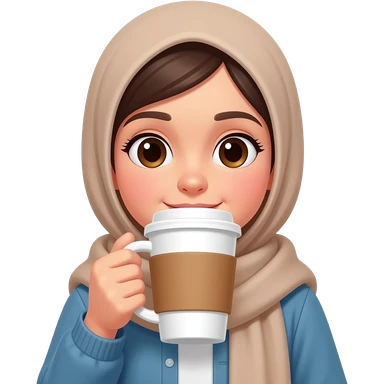 young girl in hijab drink coffee cup increase coffee cup size and change cup color emoji